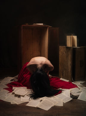 Les maux des mots est une série photographique qui questionne le poids du langage lorsqu’il devient oppressant. Les mots, privés de leur fonction première, se transforment en matière envahissante, en traces laissées au sol, autour d’un corps replié et vulnérable.